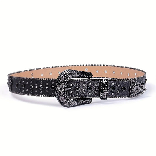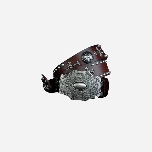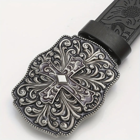 Vintage Embossed Faux Leather Cross Buckle Belt