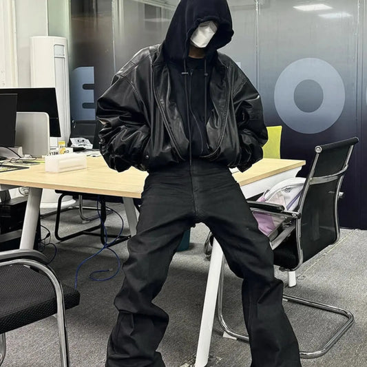 Black Windbreaker Oversized Leather Jacket
