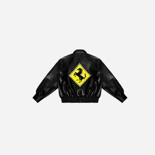 Vintage Motorcycle Embroidered Leather Bomber Jacket - Yellow