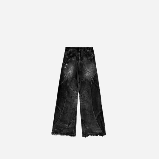 Washed Destroyed Stitches Baggy Jeans - Black