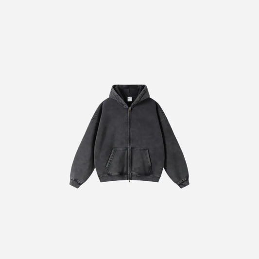 Washed Essential Casual Fleece Zip Hoodie - Gray