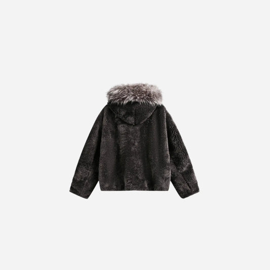 Washed Polar Hooded Fur Jacket - Grey