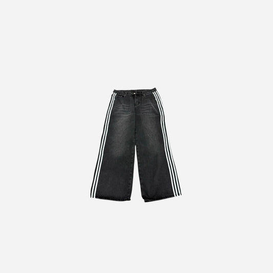 Y2k Washed Striped Baggy Jean - Black