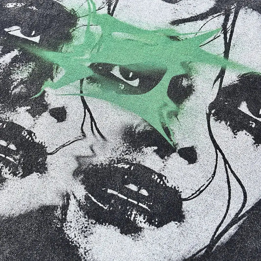 Washed Black Ripped Vintage Double Faces Graphic Tee