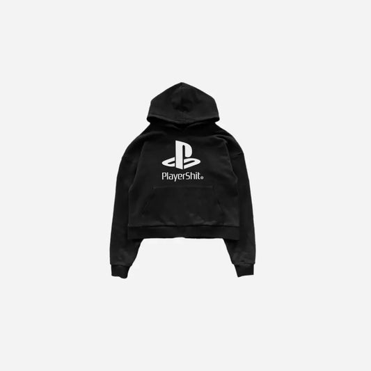 Y2k Oversized Cropped Play Logo Hoodie - Black
