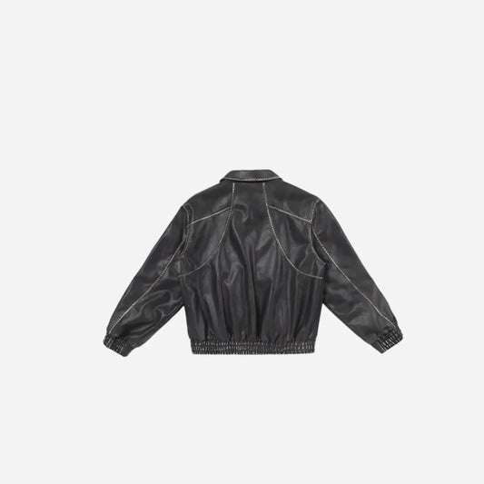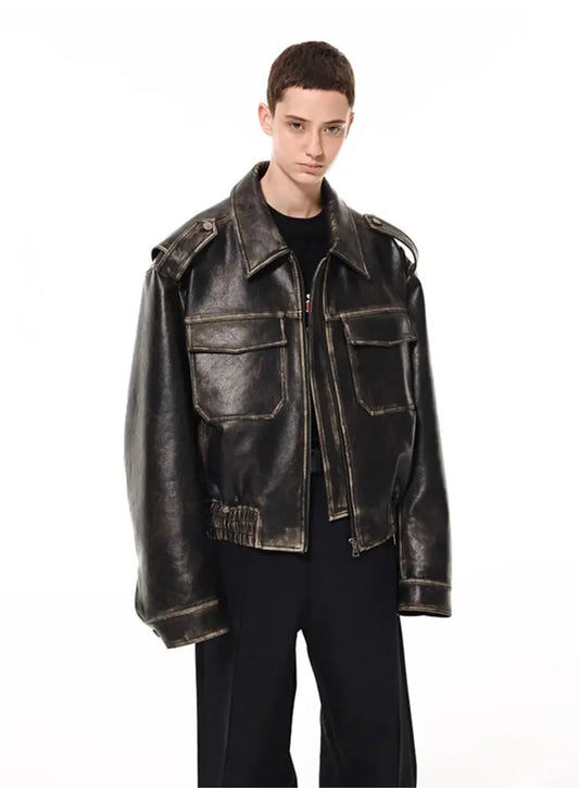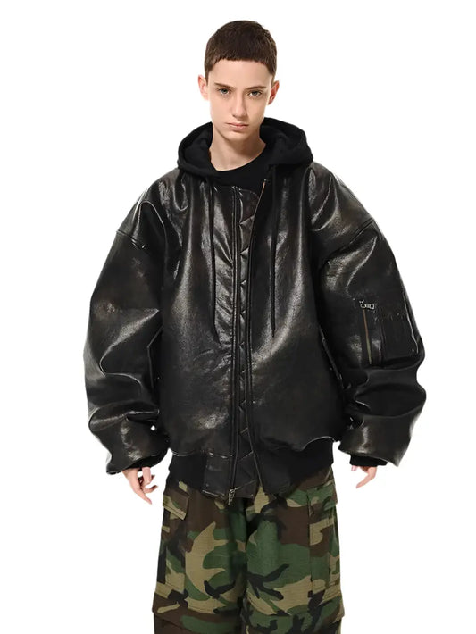 Vintage Grunge Patchwork Varsity Jacket - Black