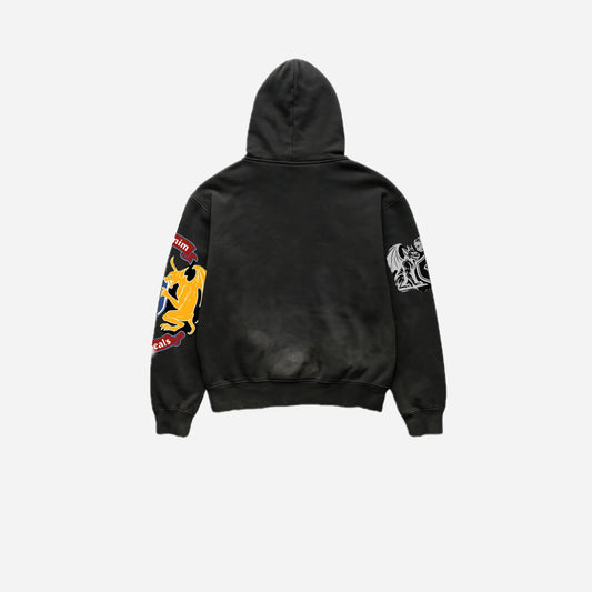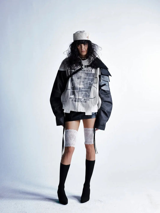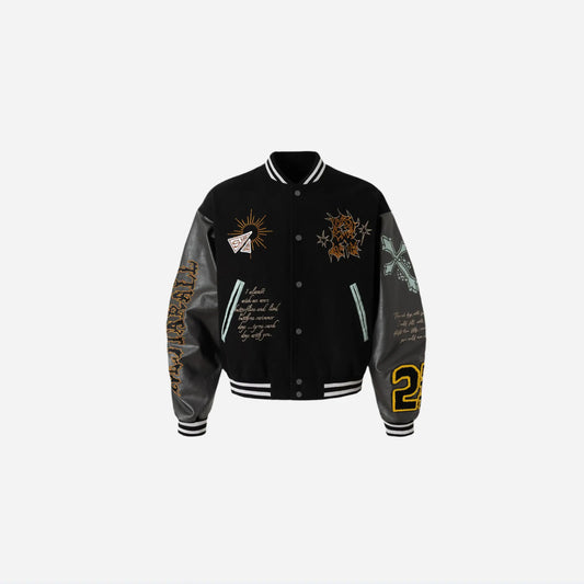 Vintage Grunge Patchwork Varsity Jacket - Black