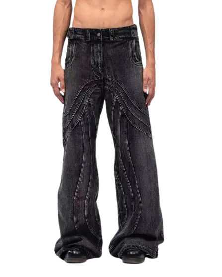 Washed Destroyed Stitches Baggy Jeans - Gray