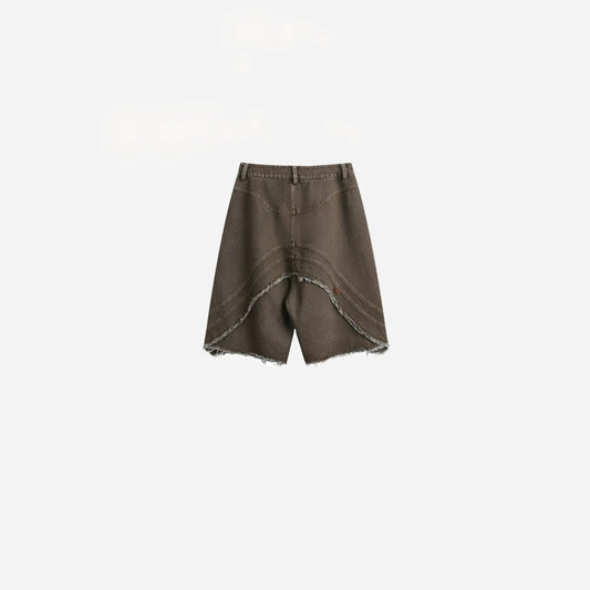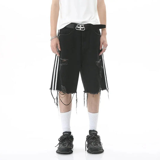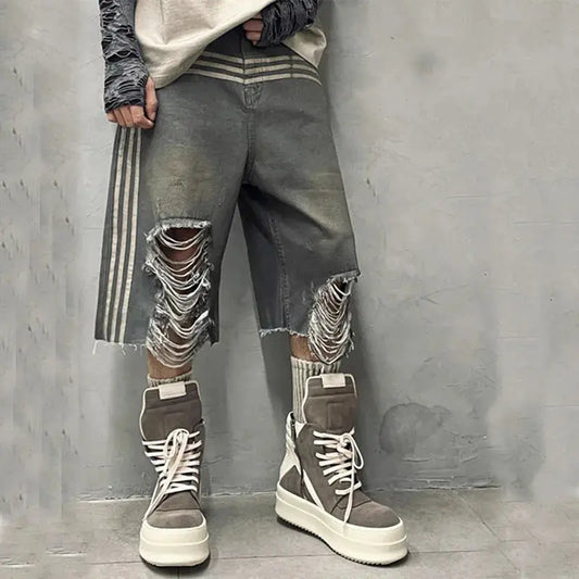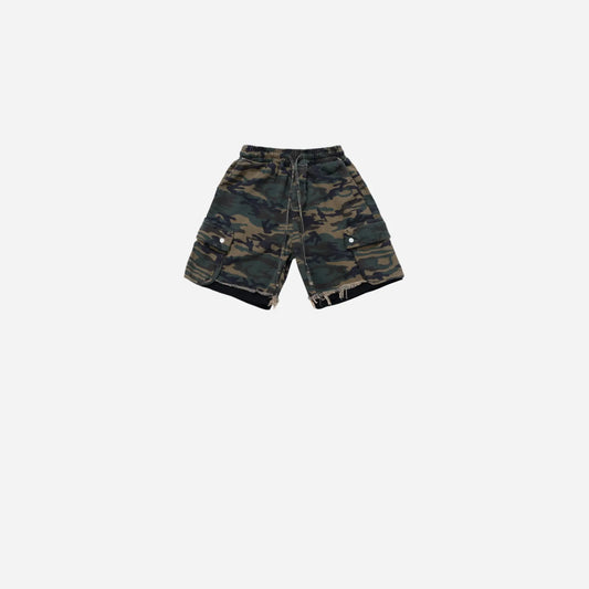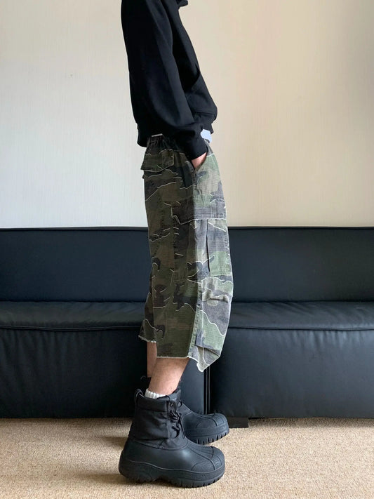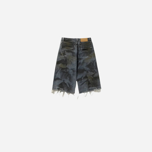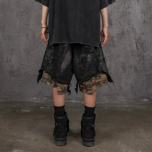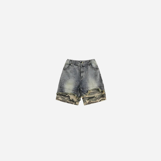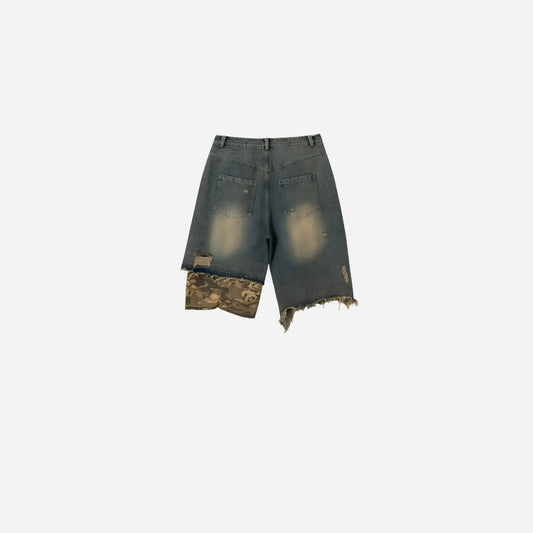 Grunge Ripped Camouflage Spliced Denim Shorts