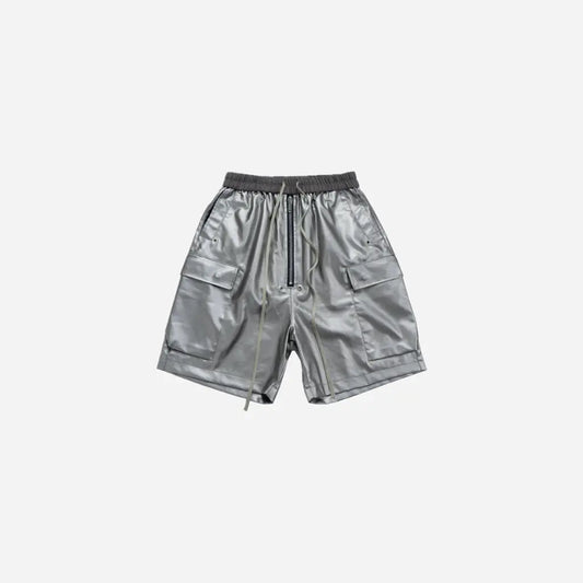 Oversized Multi Pockets Cargo Satin Short - Silver