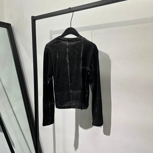 Casual Vintage Zip Long Sleeve Tee - Gray