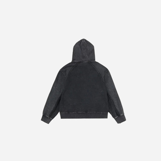 Vintage Mud Washed Embroidered Hoodie - Grey