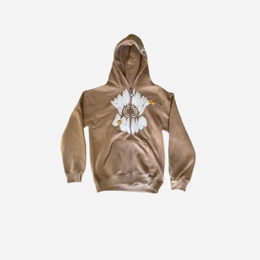 Hominus Denim Y2K Logo Zip Hoodie - Brown