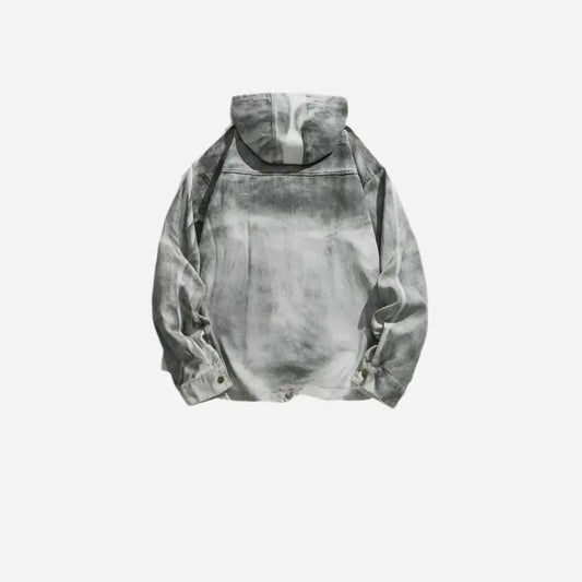 Gothic Washed Fur Hooded Zip Hoodie - Gray