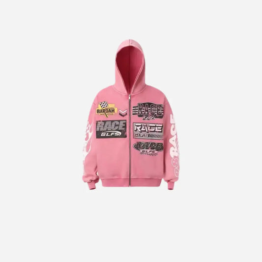 Oversized Y2K Vintage Camouflage Pattern Hoodie - Zip Hoodie