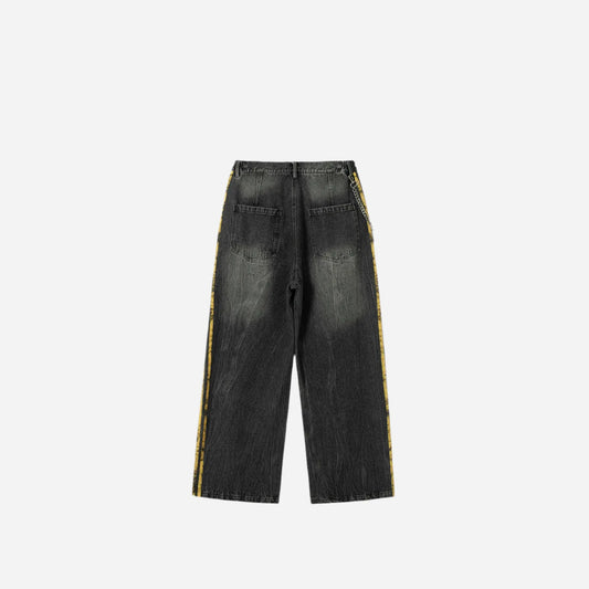 Washed Grunge Multi Pocket Baggy Jeans - Black