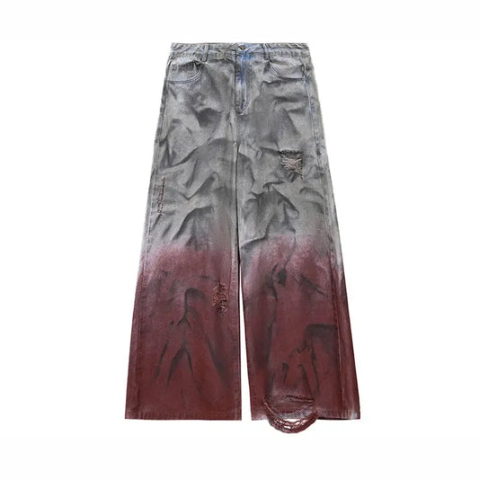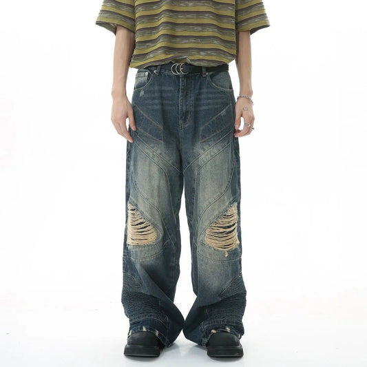 Vintage Destroyed Printed Camouflage Baggy Jean