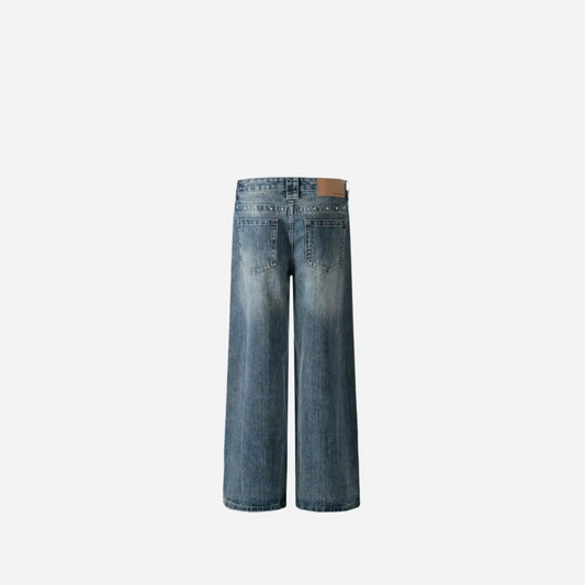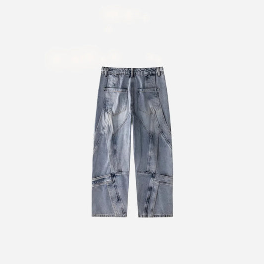 Washed Grunge Multi Pocket Baggy Jeans - Blue