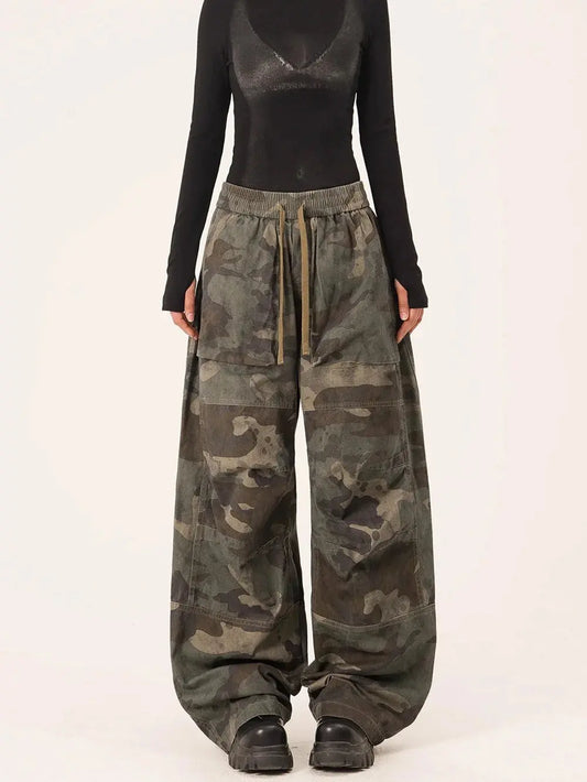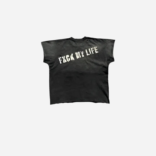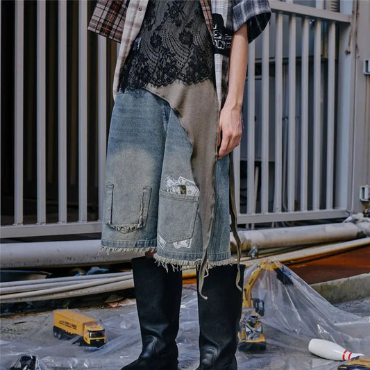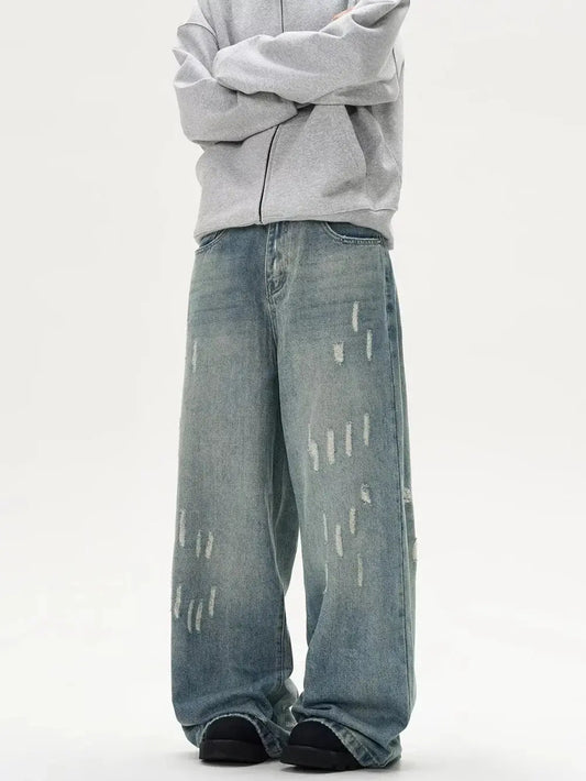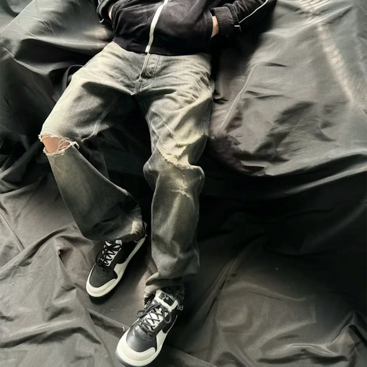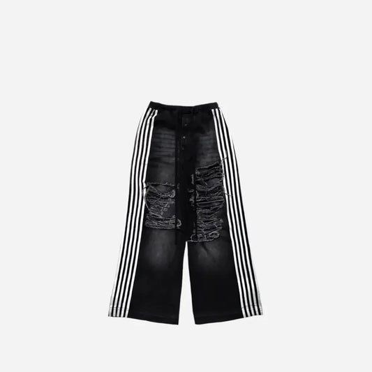 Destroyed Y2K Washed Baggy Striped Jeans - Black