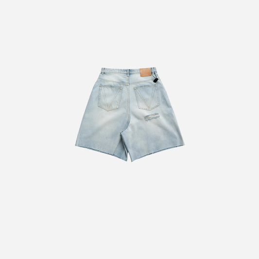 Destroyed Y2K Washed Baggy Striped Jeans - Blue