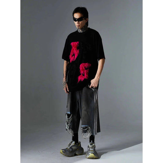 Destroyed Y2K Washed Baggy Striped Jeans - Black/Red Stripes