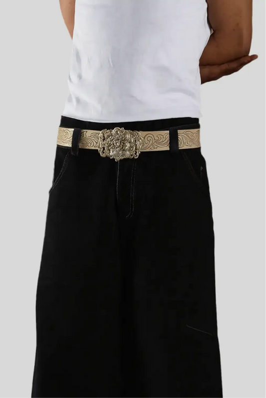 Vintage Gothic Buckle Embossed Baroq Belt - White