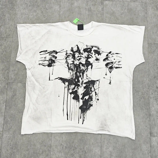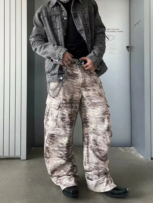 Destroyed Y2K Washed Baggy Striped Jeans - Black/White Stripes