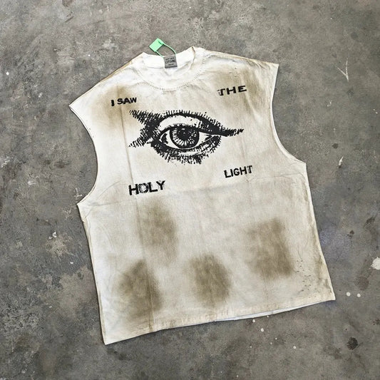 Punk Washed Ripped Metal Rivet Cap - Beige